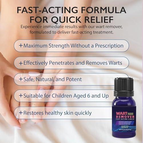 & Free ShippingFAST-ACTING LIQUID WART REMOVER: Our unique combination of salicylic acid and essential oils like tea tree and cedar leaf oil. Our salicylic acid wart remover liquid is easier to absorb than wart bandaids. It is a fast-acting wart remover freeze-off. MAXIMUM STRENGTH WART REMOVER: Wart remover has the maximum performance for plantars wart, plantar wart remover, genital wart, common wart, flat wart, corn remover, callus remover, wart remover genital, removedor de verrugas. Warts are commonly found on the hands, feet, arms, and genitals. SAFE AND EFFECTIVE: Wart formula with premium essential oils and highly potent safe, fast effective ingredients. Our wart remover is the natural choice for warts for the whole family. It is effective for wart freeze off. ESPECIALLY DESIGNED FOR: Plantar warts, genital warts, genital wart remover for men fast, wart remover bandaid, corn, common warts, flat warts, corn removal, calluses on foot, toenails, and fingernails(DON’T USE ON FACE!!!). MAXIMUM STRENGTH WITHOUT A PRESCRIPTION: Quick and Simple Application.